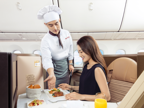 餐飲研發(fā)由我們的中、西高級餐飲經(jīng)理聯(lián)合米其林餐廳、五星級酒店等業(yè)界知名廚師(Star Chef)共同開展,餐飲制作均由專業(yè)的餐飲供應(yīng)商負(fù)責(zé),餐飲呈現(xiàn)由經(jīng)過專業(yè)培訓(xùn)的乘務(wù)員廚師(Cabin Chef)及貴賓室廚師(Club Chef)為您服務(wù)。